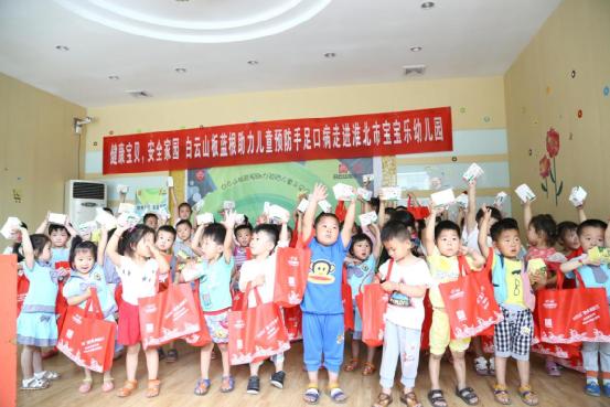 防治手足口病,注重预防是关键。6月15日,广东知名药企白云山和黄中药有限公司“白云山复方丹参片爱心公益基金” 走进淮北宝宝乐幼儿园,为幼儿园的老师与孩子们开展了一场“健康宝贝 安全家园——白云山板蓝根助力预防儿童手足口病”防治知识健康教育活动,为宝宝乐幼儿园的老师、学生及学生家长们普及预防和治疗手足口病的健康知识。活动当天,白云山复方丹参片爱心公益基金向宝宝乐幼儿园师生们捐赠了白云山口炎清颗粒2700包和白云山儿童板蓝根6000包,以及一批儿童文具用品,同时也向师生们派发了手足口病预防手册,加强易感群体对手足口病防治的意识。此外,白云山复方丹参片爱心公益基金还向家庭比较困难的儿童捐赠健康礼包,为其实现小心愿。