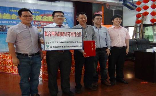 培训会上,广药白云山神农学院EMBA教育中心与湖南国大民生堂战略合作,启动 “联合用药战略研究合作项目”签约仪式。紧接着广药白云山神农学院EMBA教育中心计划联合《21世纪药店报》,与有经营特色的全国百强连锁广泛建立主题项目研究合作,整合资源,加强医药零售行业信息,门店绩效,品类管理,会员管理等项目研究探讨,提升行业影响力,引领行业新标准。